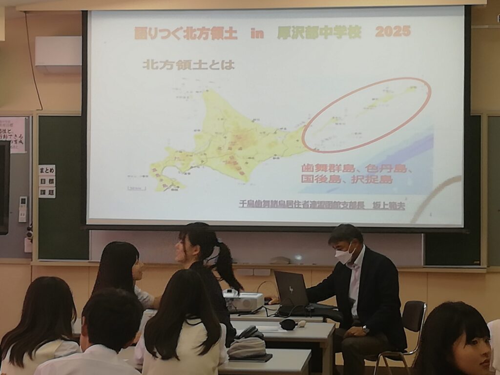 今日は、千島歯舞諸島居住者連盟函館支部の坂上範夫様を講師としてお招きし、北方領土学習を行いました。
