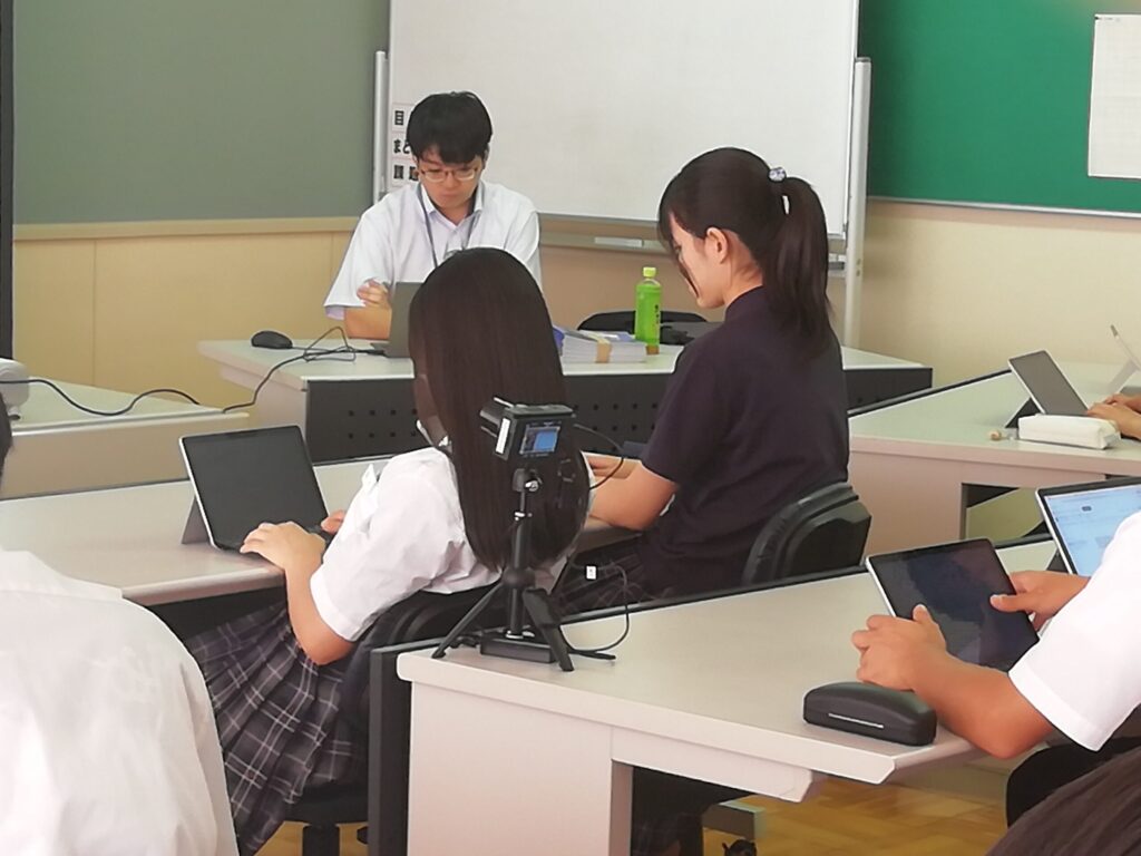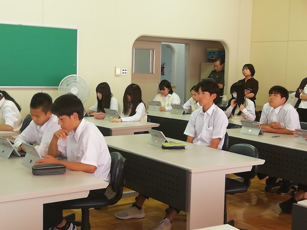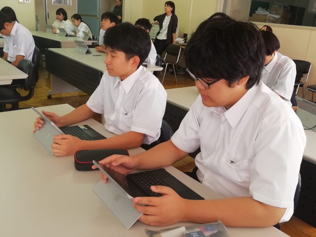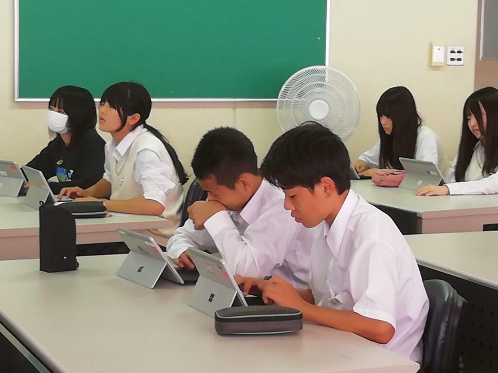 お話を聞きながら、端末にメモを取り、とても集中して授業を受けていました。