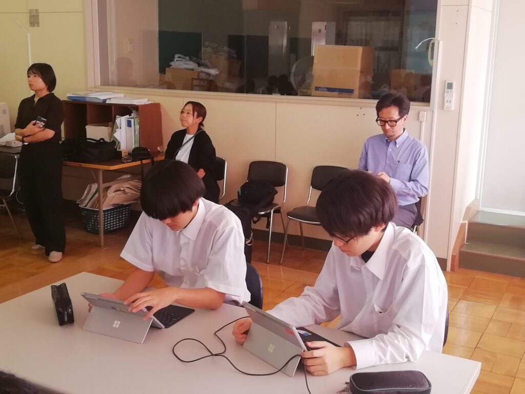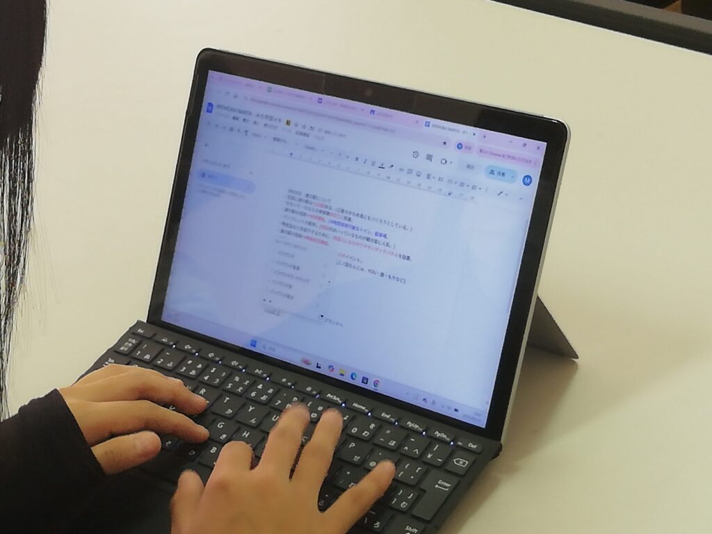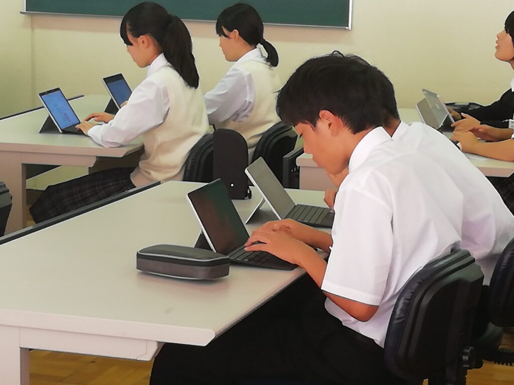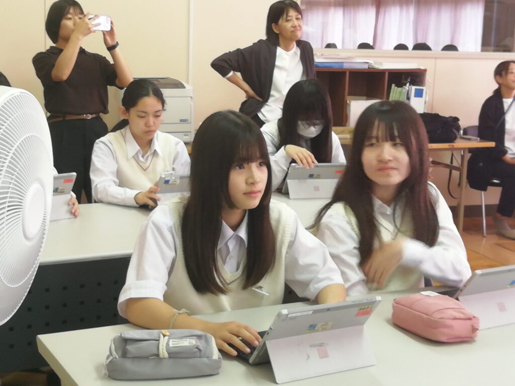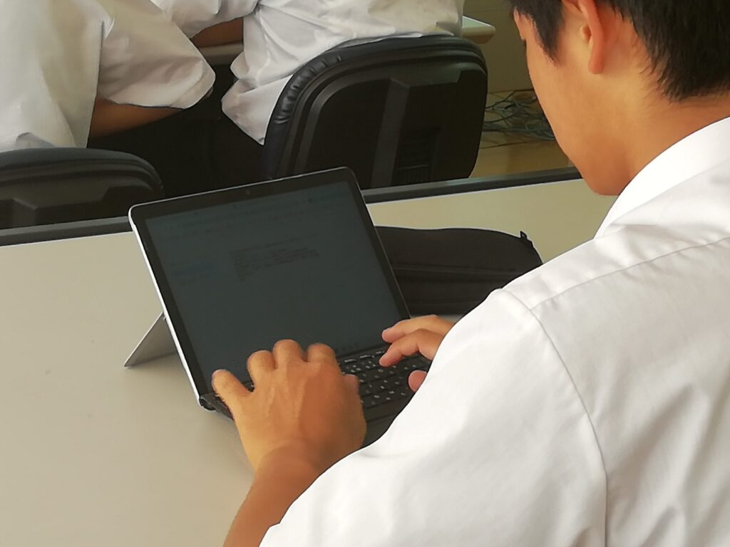 お話を聞きながら、端末にメモを取り、とても集中して授業を受けていました。