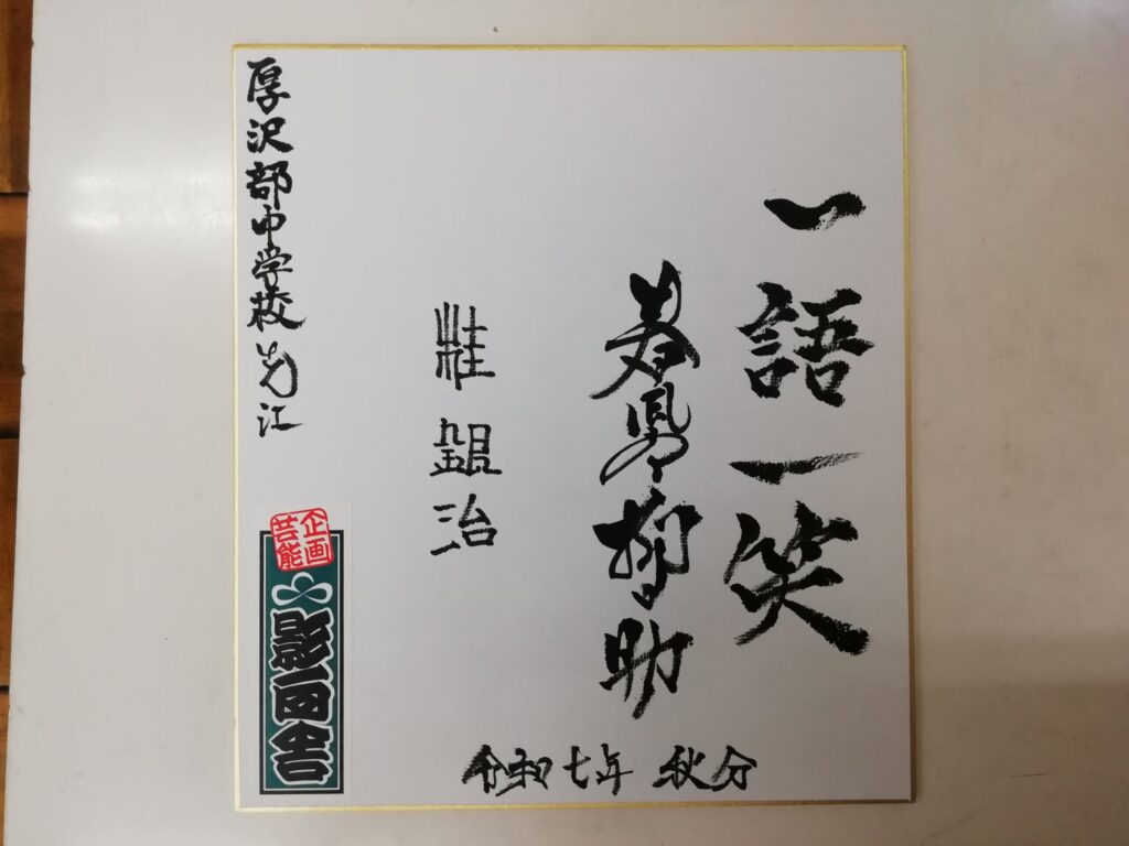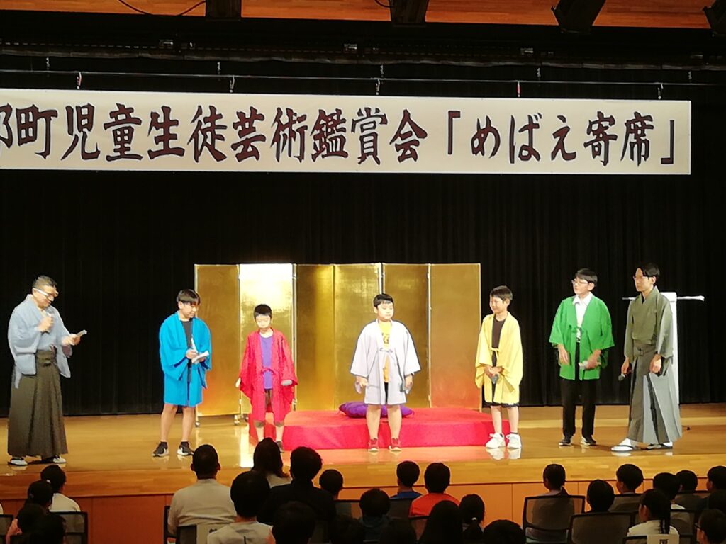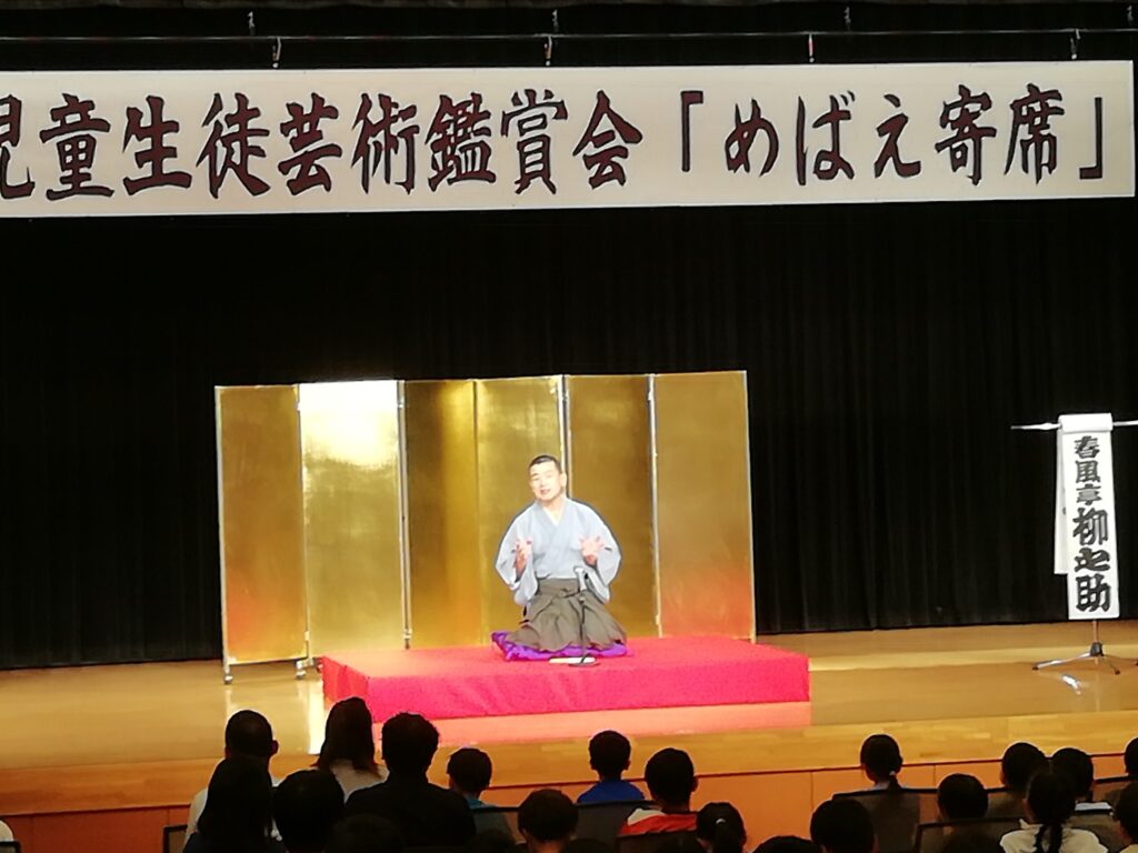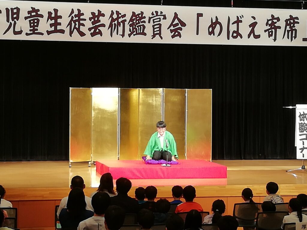 今日は、厚沢部町内の小中学生が一堂に会し、あゆみで芸術鑑賞がありました。今年は「めばえ寄席」でした。