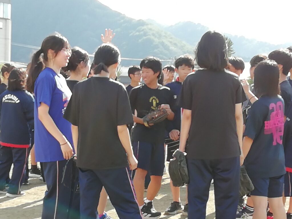 じゃんけんに勝って、先攻を選んだ3年生は初回から6点先取。一度は逆転されたものの、最終的には3年生が勝ちました。野球経験あるなしにかかわらず、皆さんの活躍する場面が見られとても楽しませてもらいました。