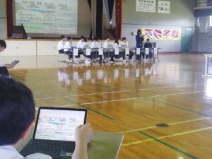 今日、あゆみで、第45回檜山中学校英語暗唱大会が行われました。この大会は、発表者が現在使用している教科書から題材を選び、暗唱度や内容表現などの表現力、抑揚や強勢などの音声、視線や落ち着きなどの態度が評価されます。
