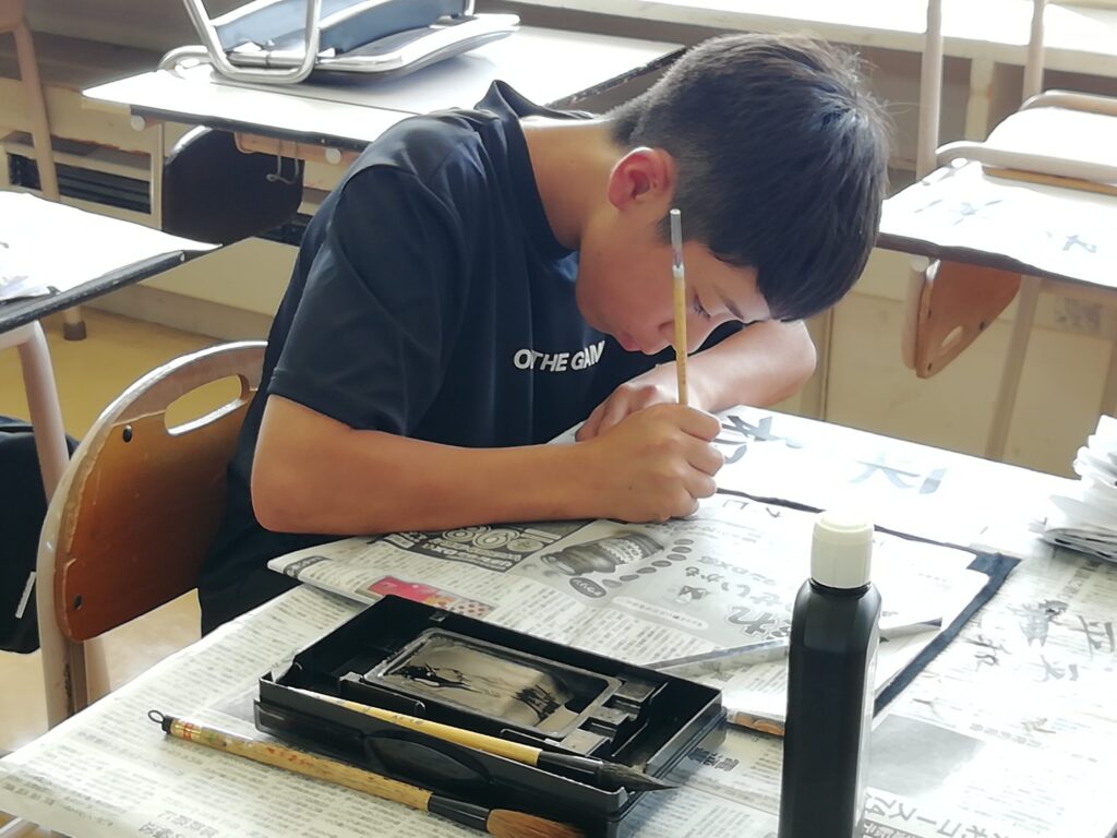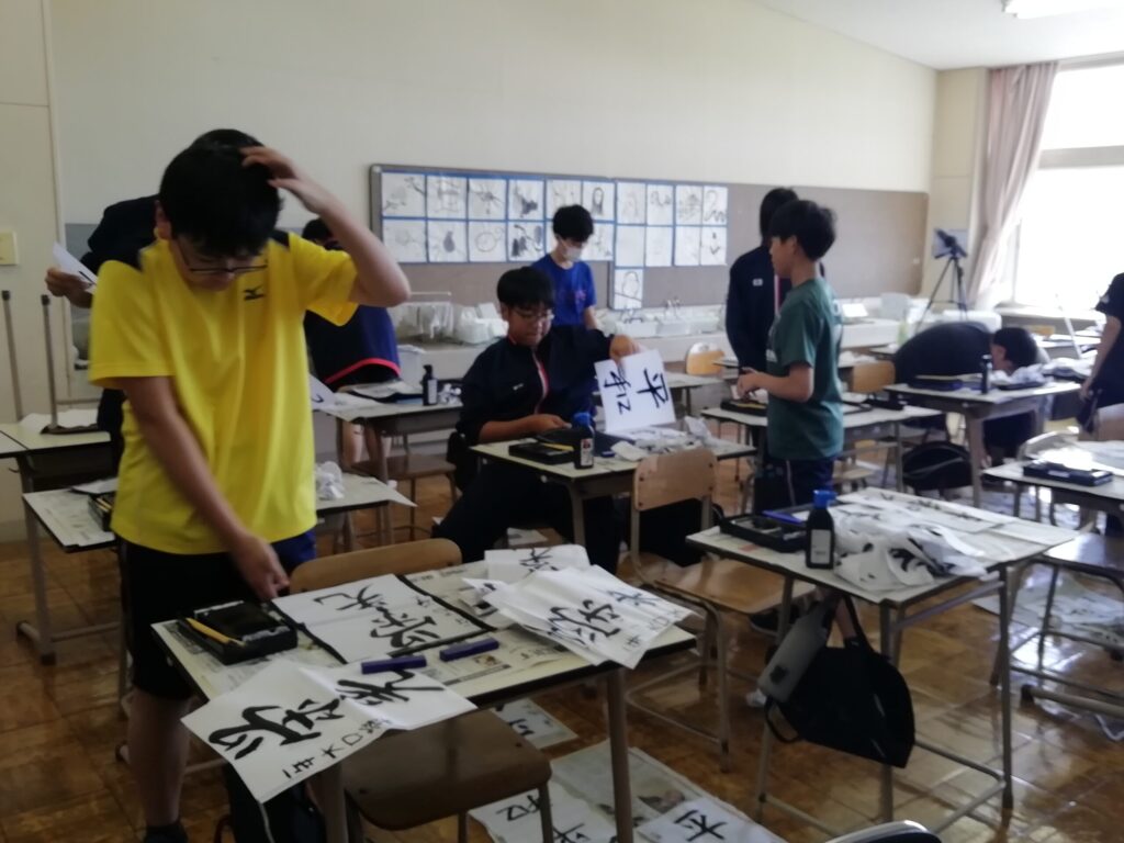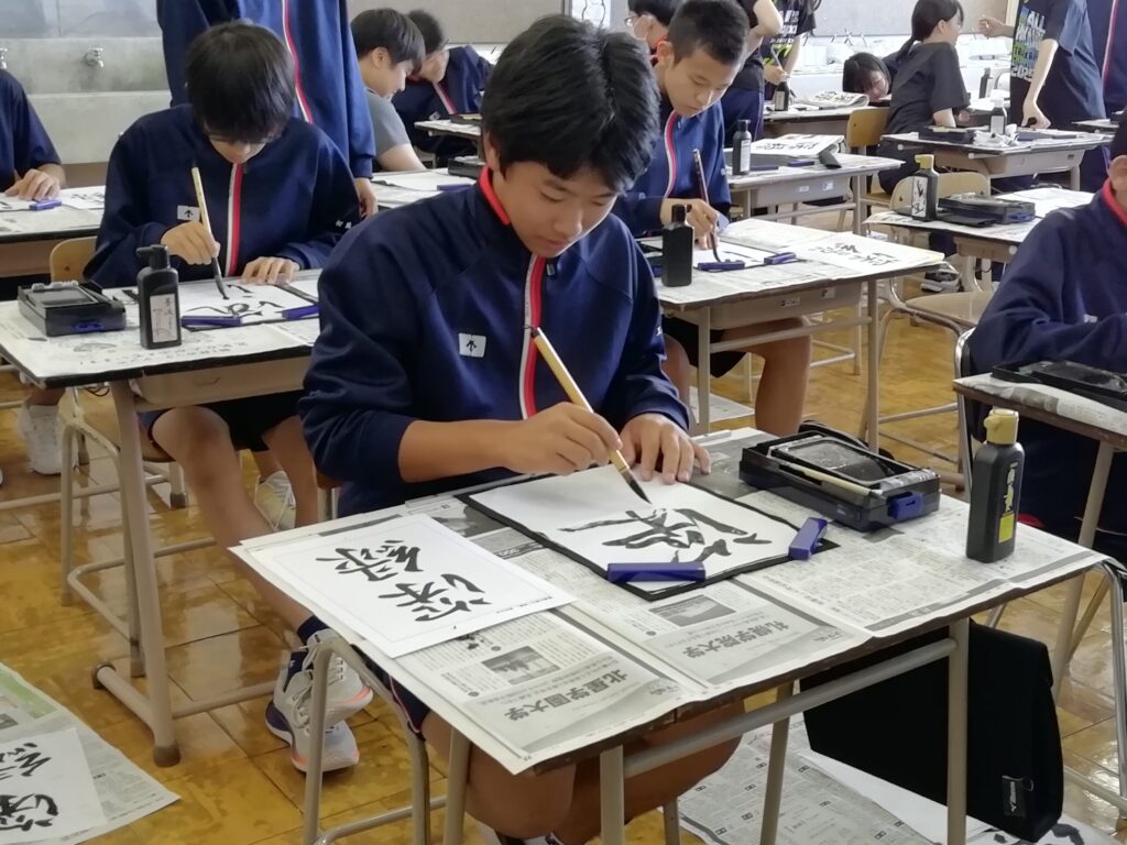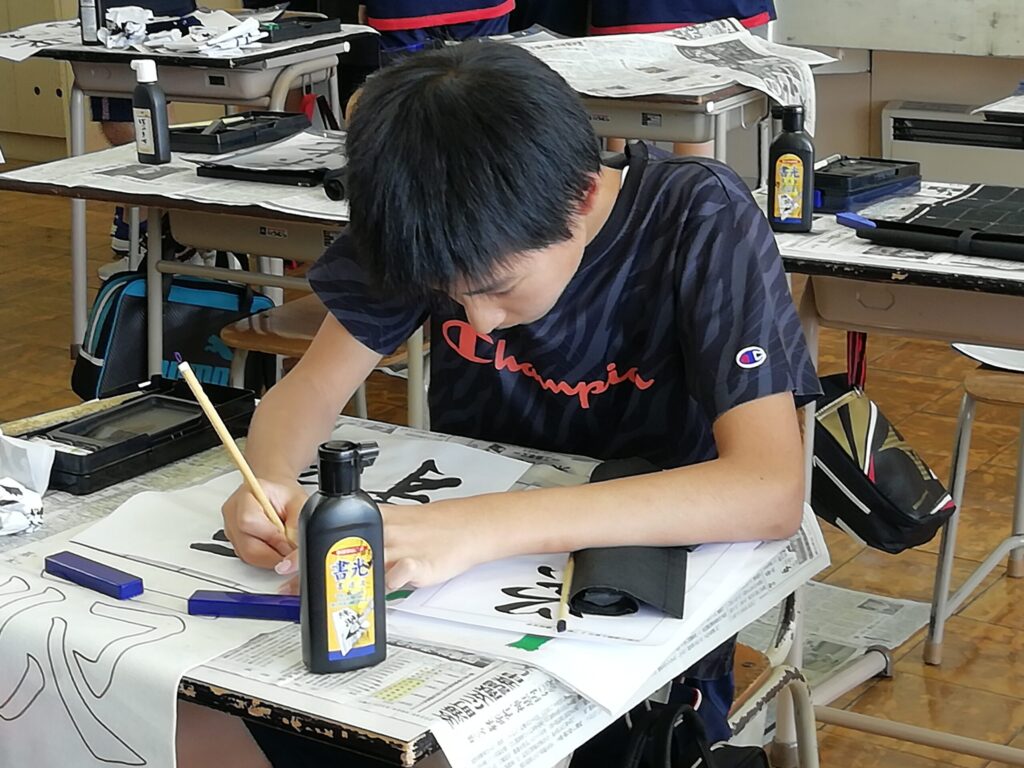 各教科では、光翔祭に展示される作品作りが行われています。国語の時間には、書道を行っていました。集中して、渾身の力作を仕上げていました。