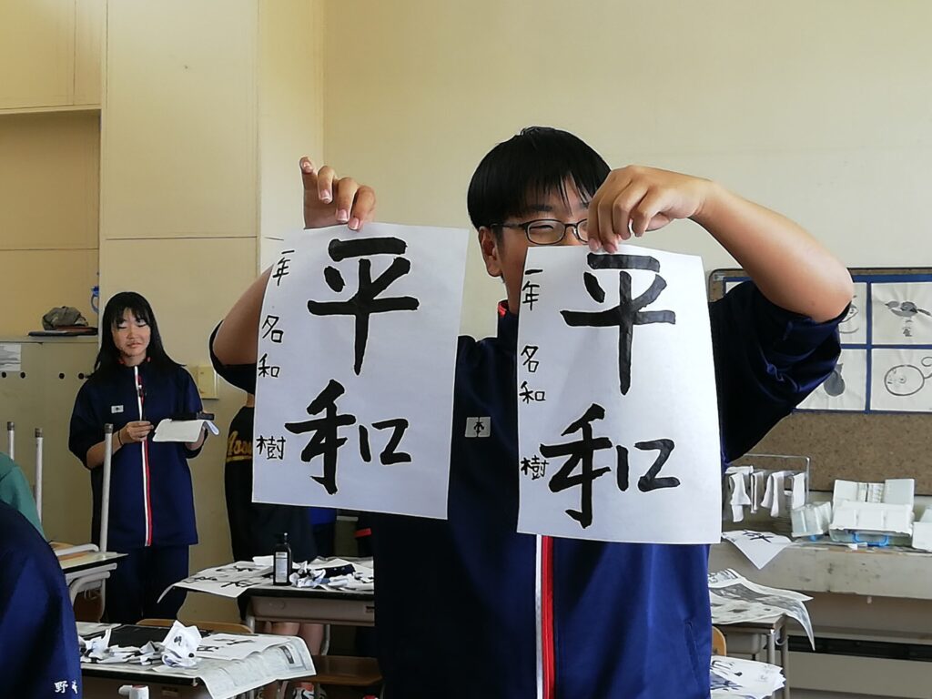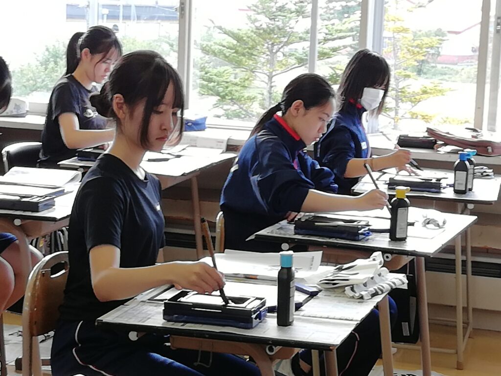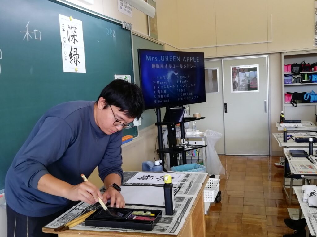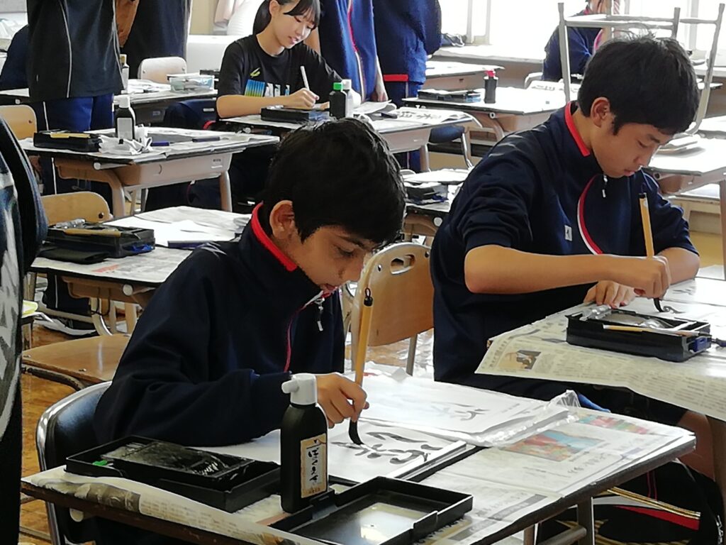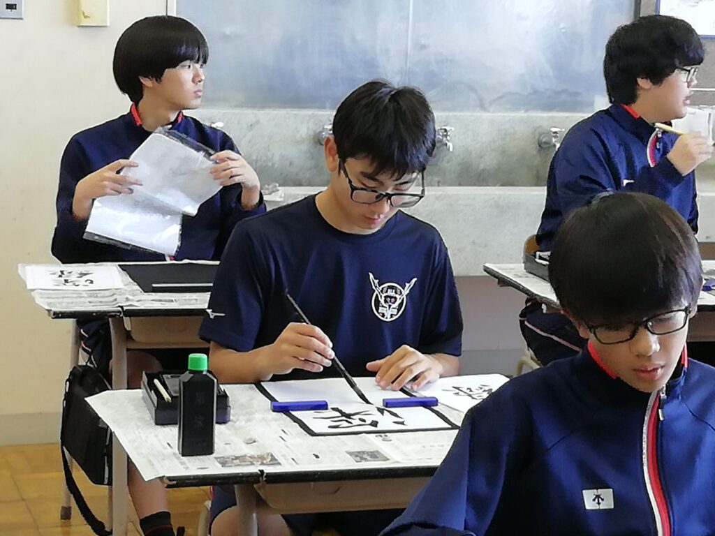各教科では、光翔祭に展示される作品作りが行われています。国語の時間には、書道を行っていました。集中して、渾身の力作を仕上げていました。