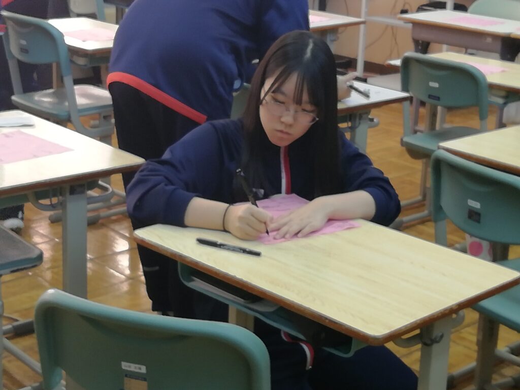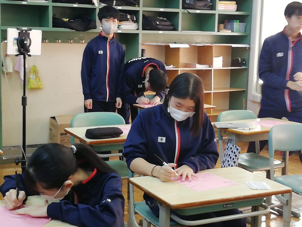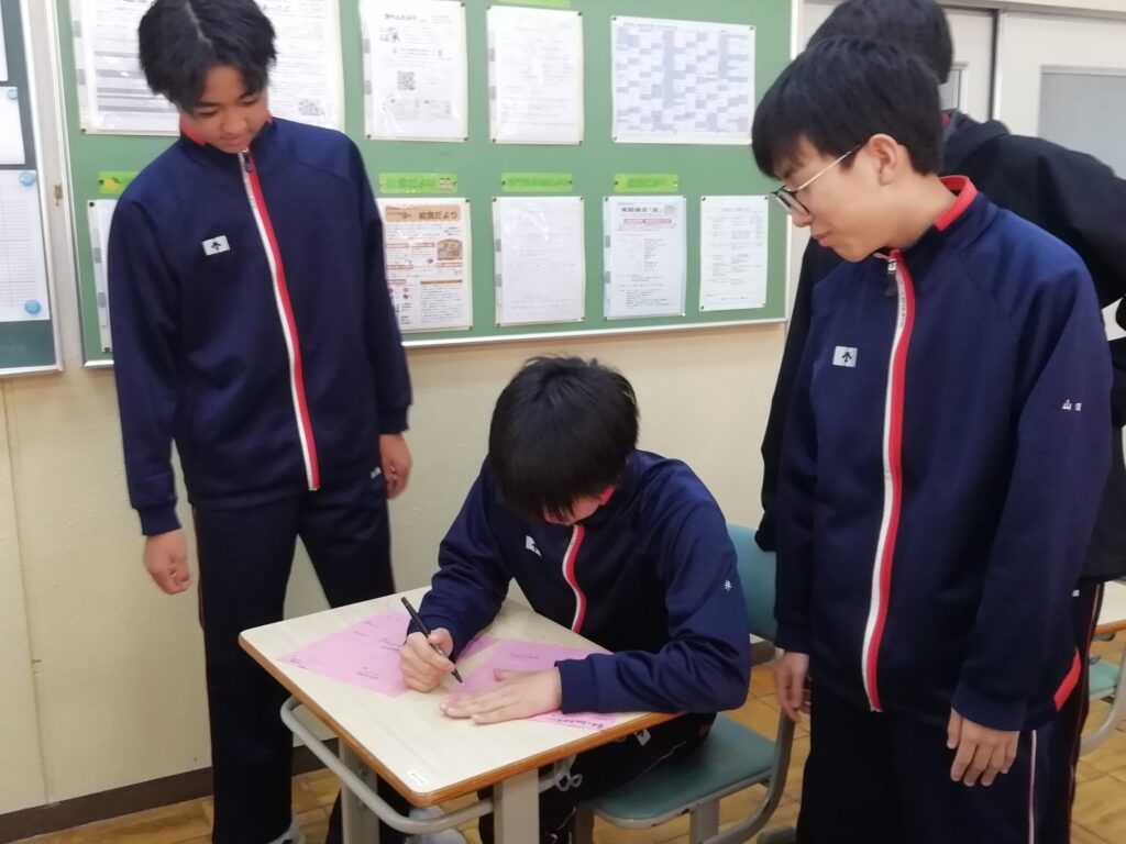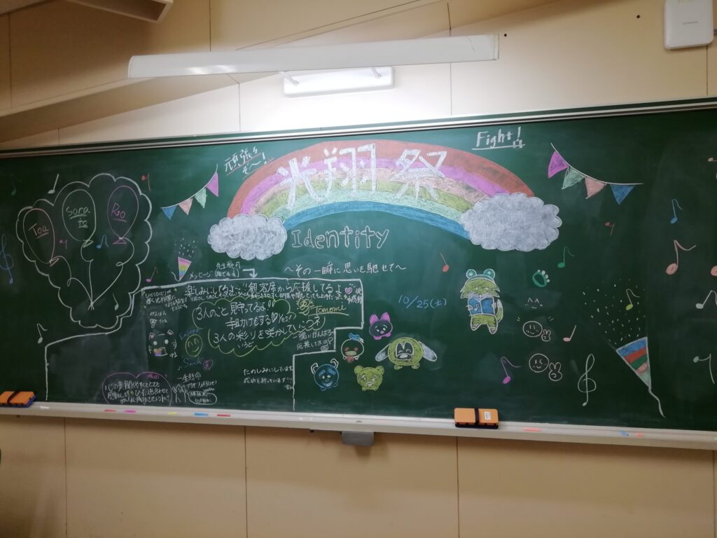 明日の抱負を語り合う学年、ポケットチーフへメッセージを書き合う学年、黒板アートを作成している学年、全員で歌を歌っている学年。各学年、思い思いの過ごし方をしていました。