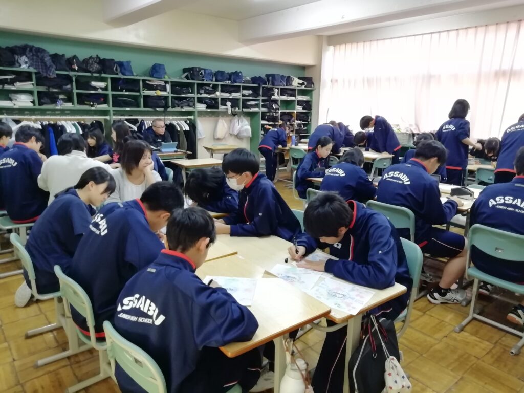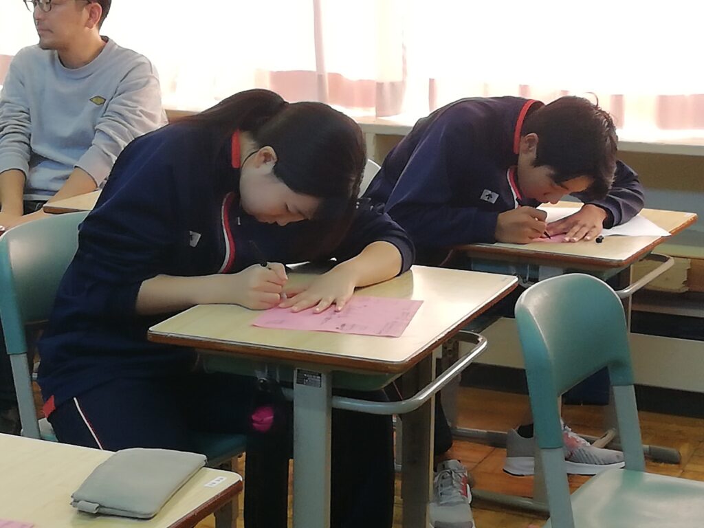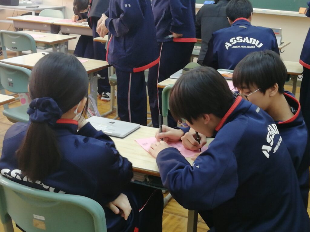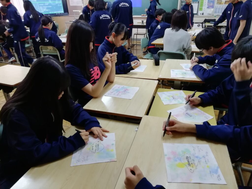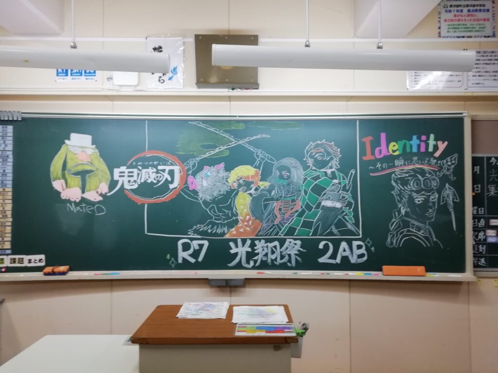 明日の抱負を語り合う学年、ポケットチーフへメッセージを書き合う学年、黒板アートを作成している学年、全員で歌を歌っている学年。各学年、思い思いの過ごし方をしていました。
