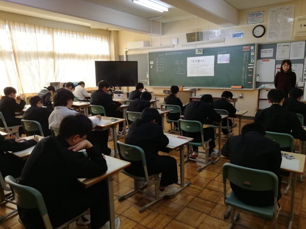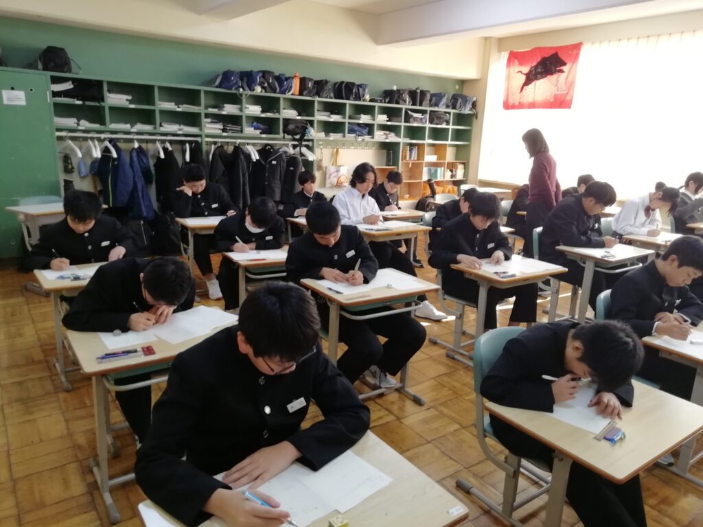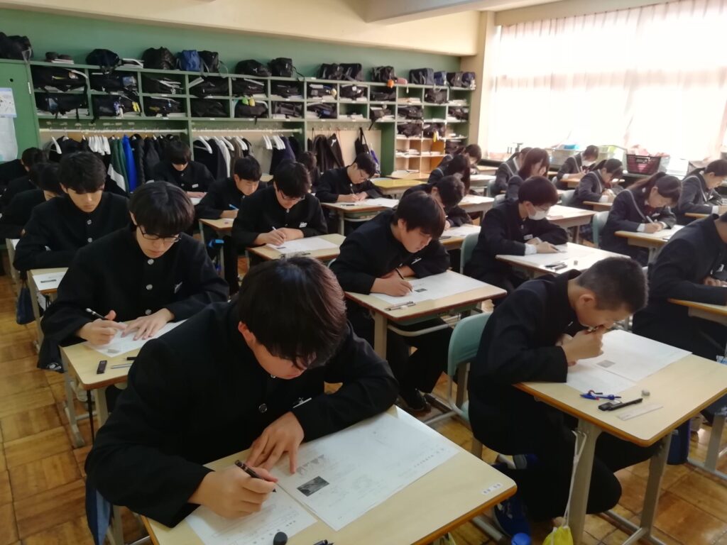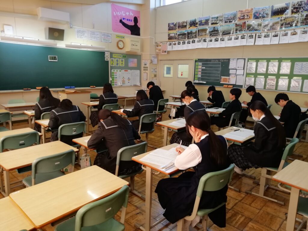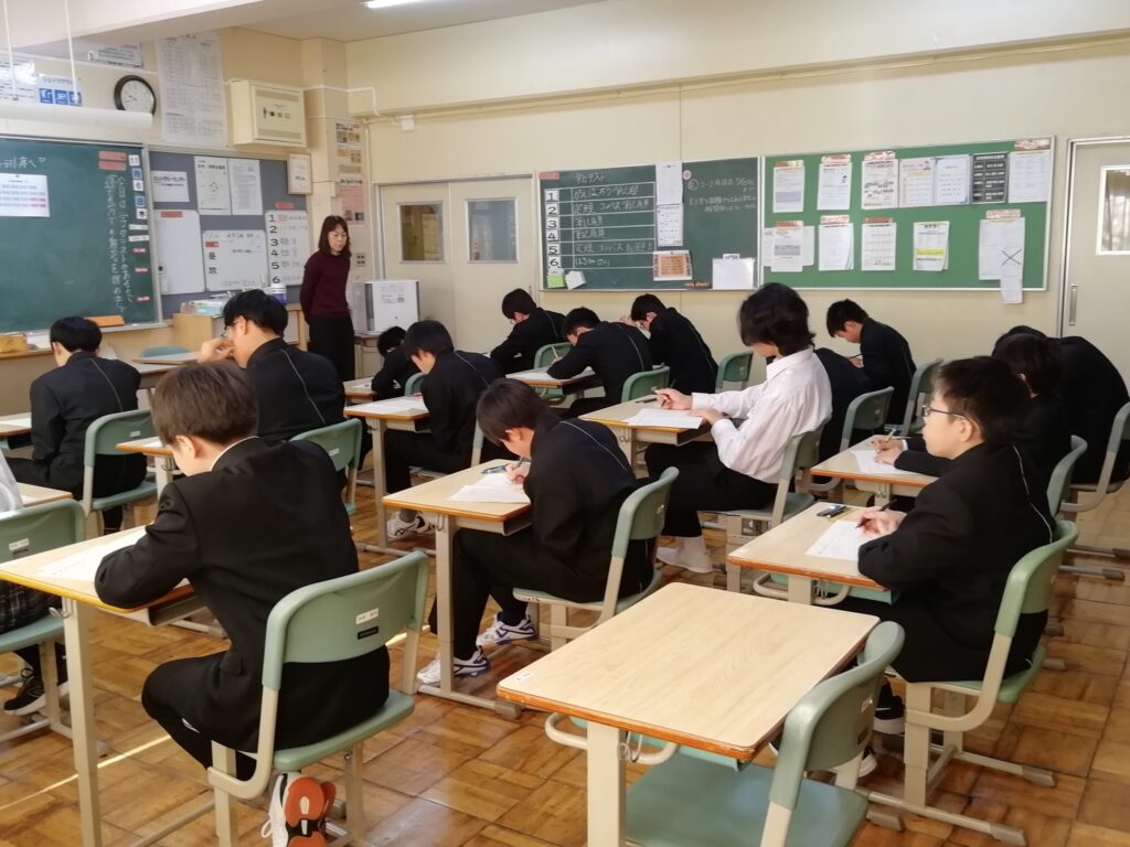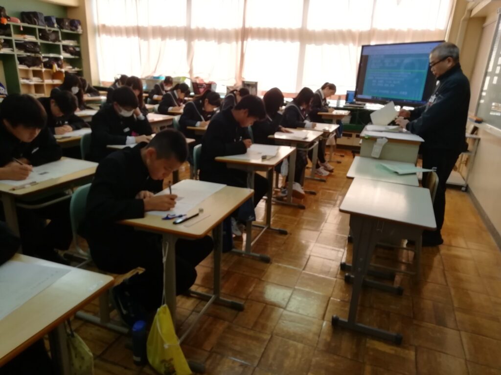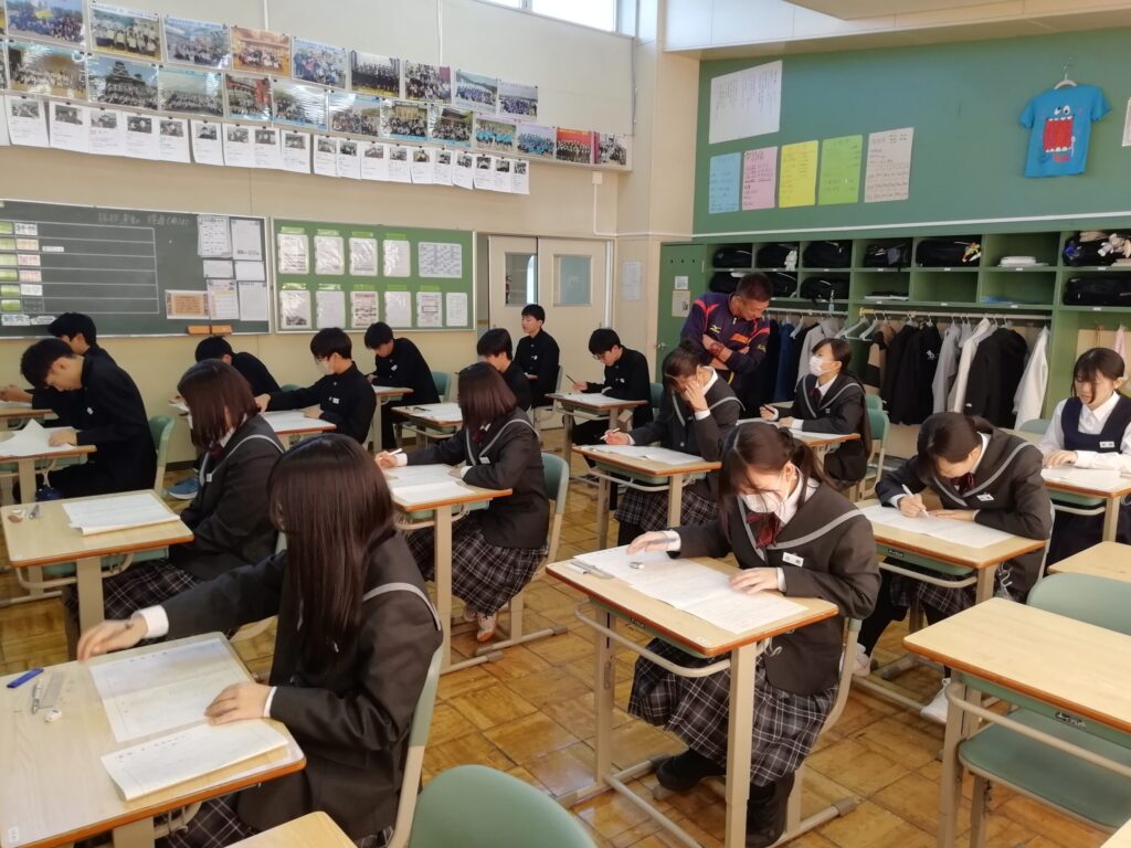 今日は、全学年学力テストが行われました。3年生は進路選択に向けて重要なテストとなる総合Cテストでした。全学年、緊張感をもってテストを受けていました。