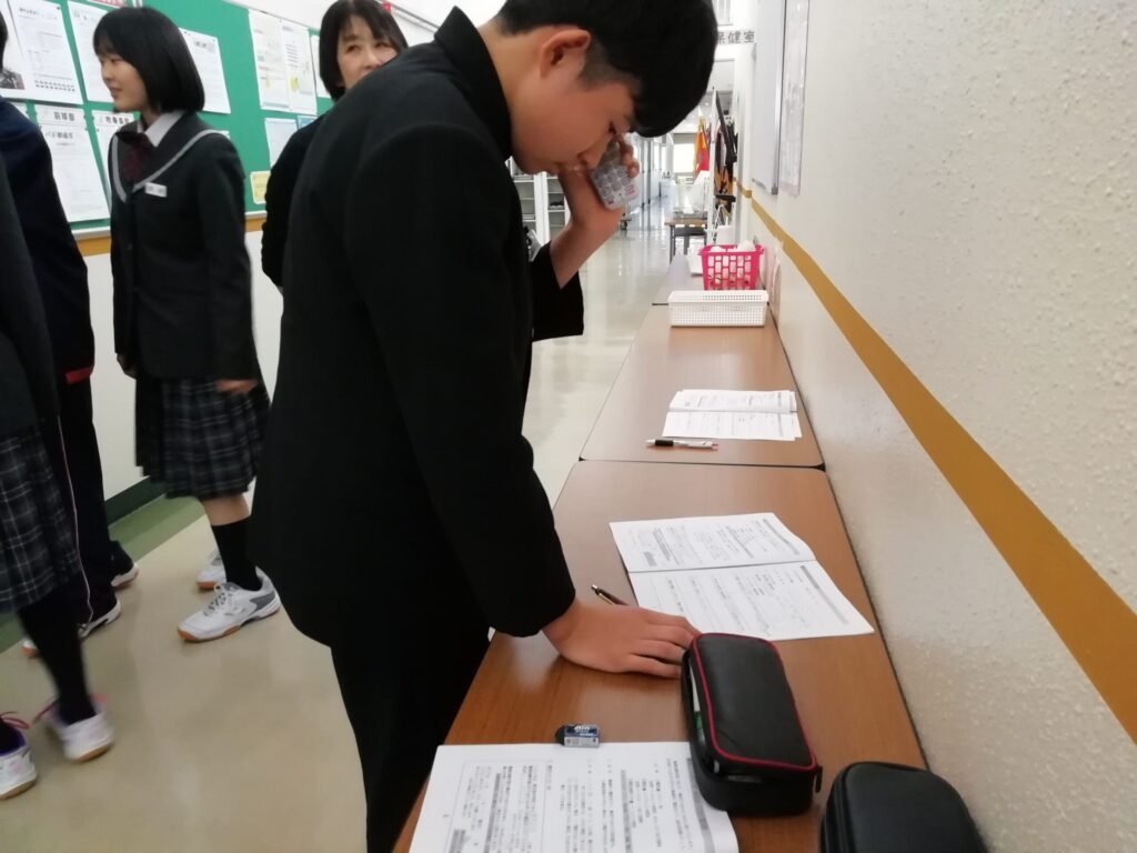 2年生は今週の木曜日と金曜日に町内外14の事業所へ職場体験学習に行きます。今まで、準備を重ねてきており、今日は最終的な事前の打ち合わせ行っていました。緊張感をもって、丁寧な言葉づかいで電話をかけていました。