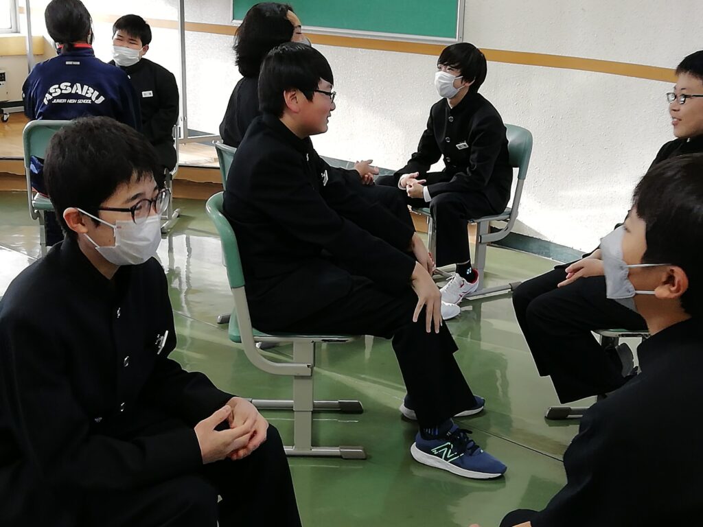 今日の6時間目、1年生は1階フリースペースでエンカウンタ―学習をしました。