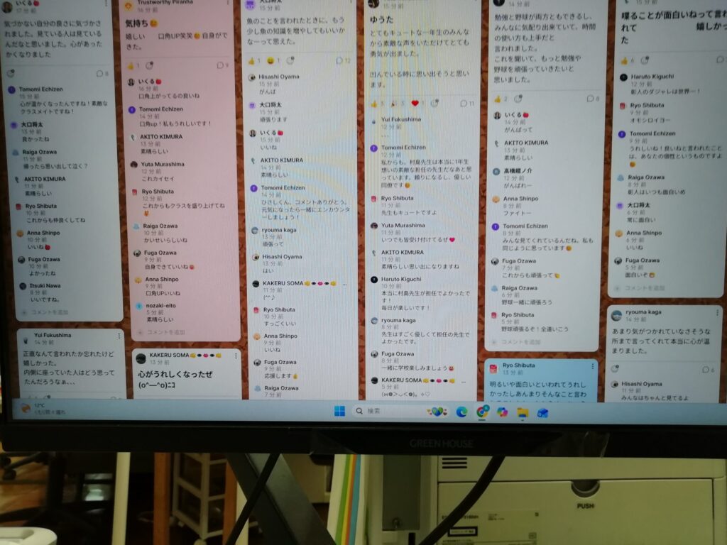 そのあと、教室に戻り、振り返りを行いました。さらにそこにもコメントがたくさん書かれ、心がポッカポカになったようでした。