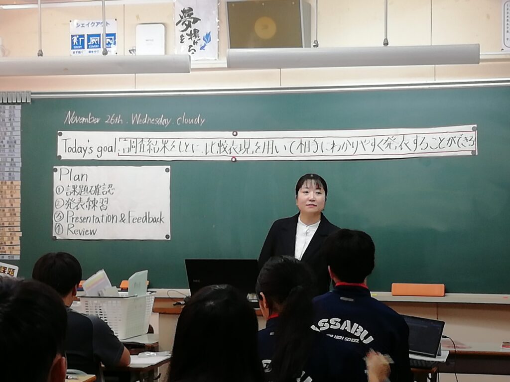 練習したことをペアで発表し合い、フィードバックを行いました。相手にわかりやすく伝えようとする発表者とその発表を真剣に聞いている聞き手の姿勢にとても関心しました。