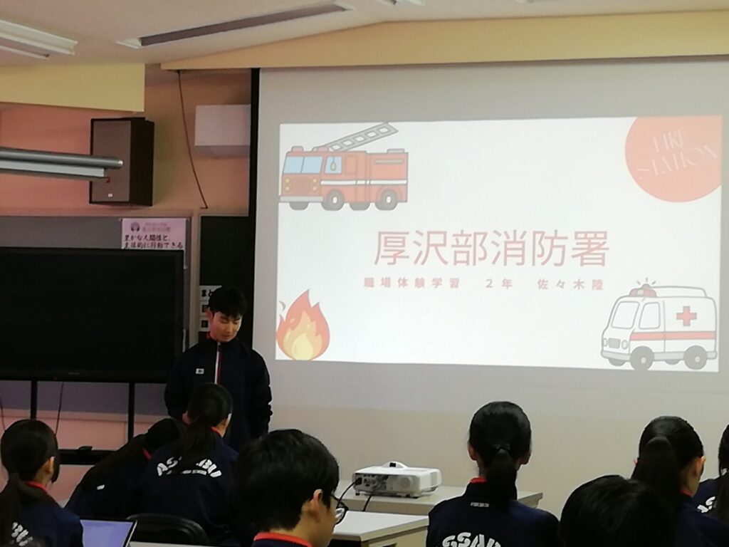 12月3日(水)。2年生は、職場体験学習の報告会をしました。