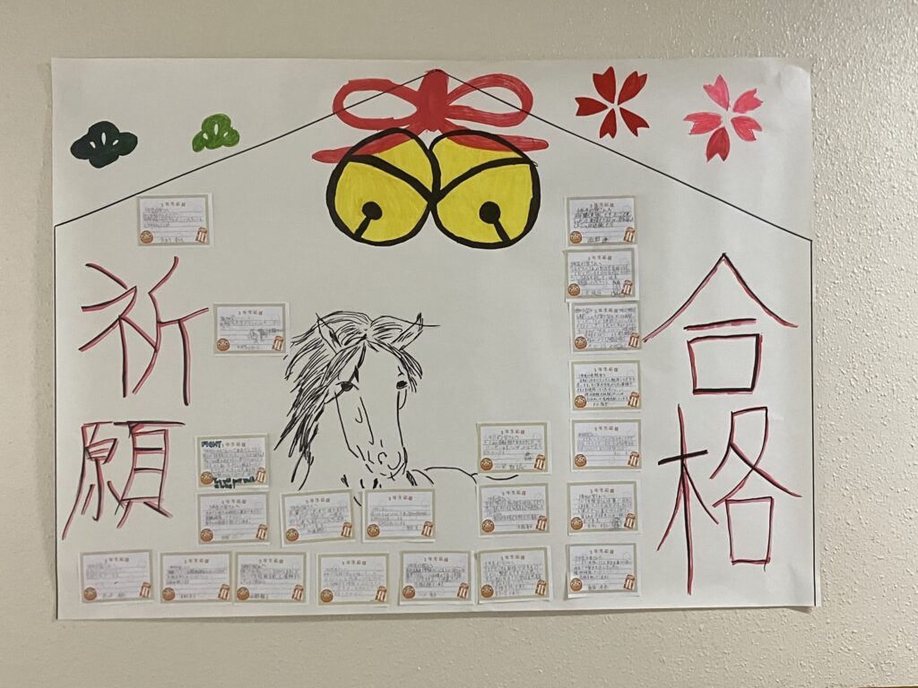 2026年1月16日 / 最終更新日時 : 2026年1月16日 assabuchu ニュース(生徒の様子) 🌸合格祈願🌸 いよいよ、私立高校を皮切りに次々と入試が行われます。 1年生と2年生がお世話になった3年生の合格祈願に、工夫を凝らしたメッセージを作成し、玄関前廊下に貼ってくれました。 1年生からのメッセージ 2年生からのメッセージ 3年生の皆さん、1・2年生の思いを胸に全力を出し切ってくださいね。