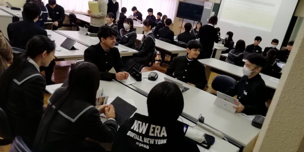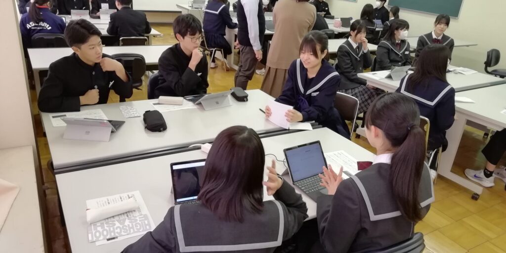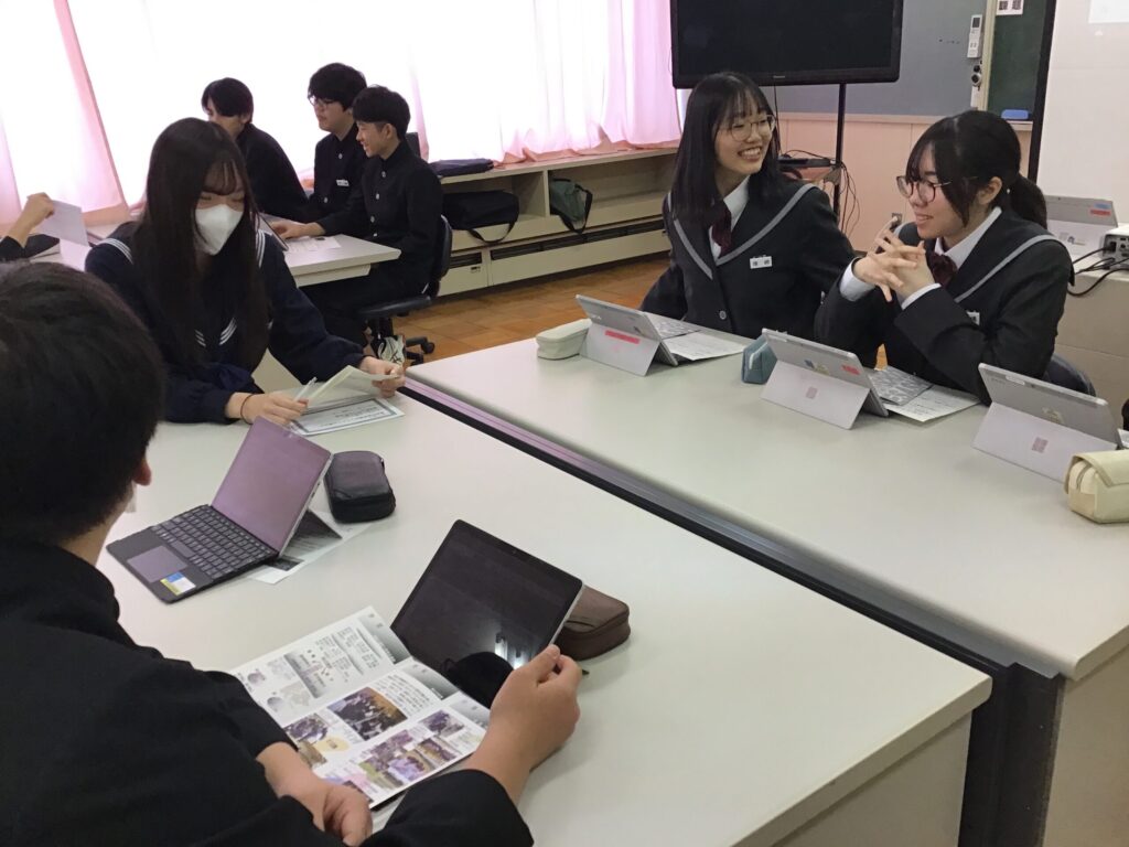 また、卒業生の先輩も来校し、それぞれグループになって高校生活について質問・交流をしました。