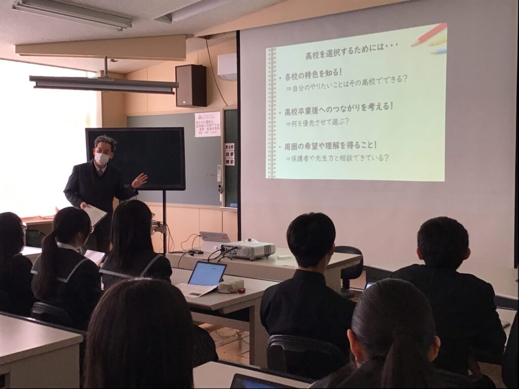 これから自分の進路先を決める大切な時期に入っていきます。今日聞いた話を参考にして、保護者の方ともよく相談し、未来を見据えましょう。