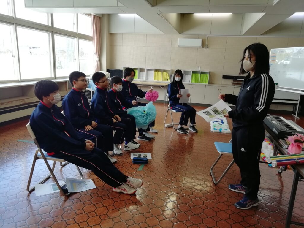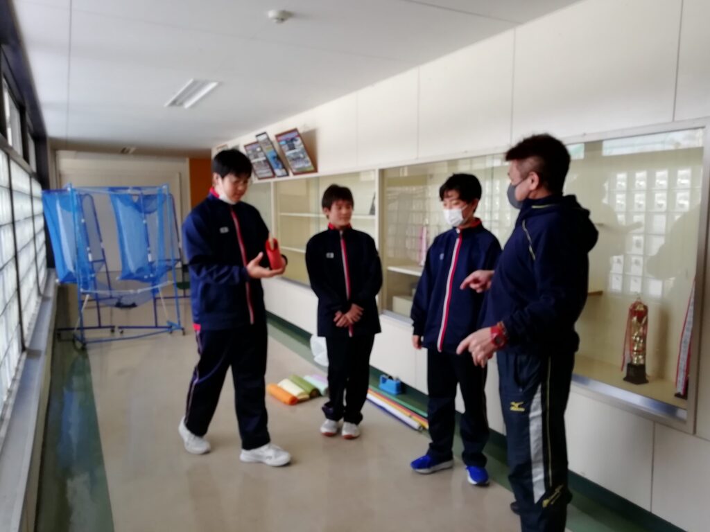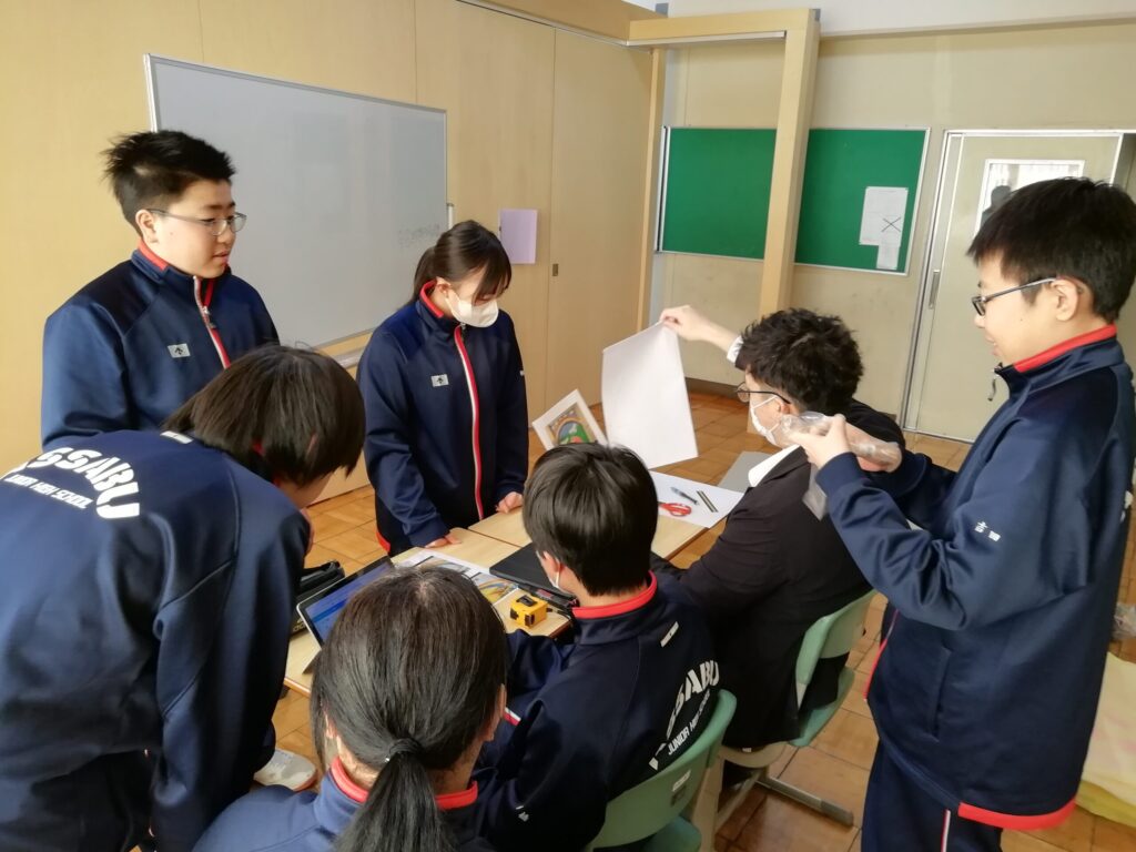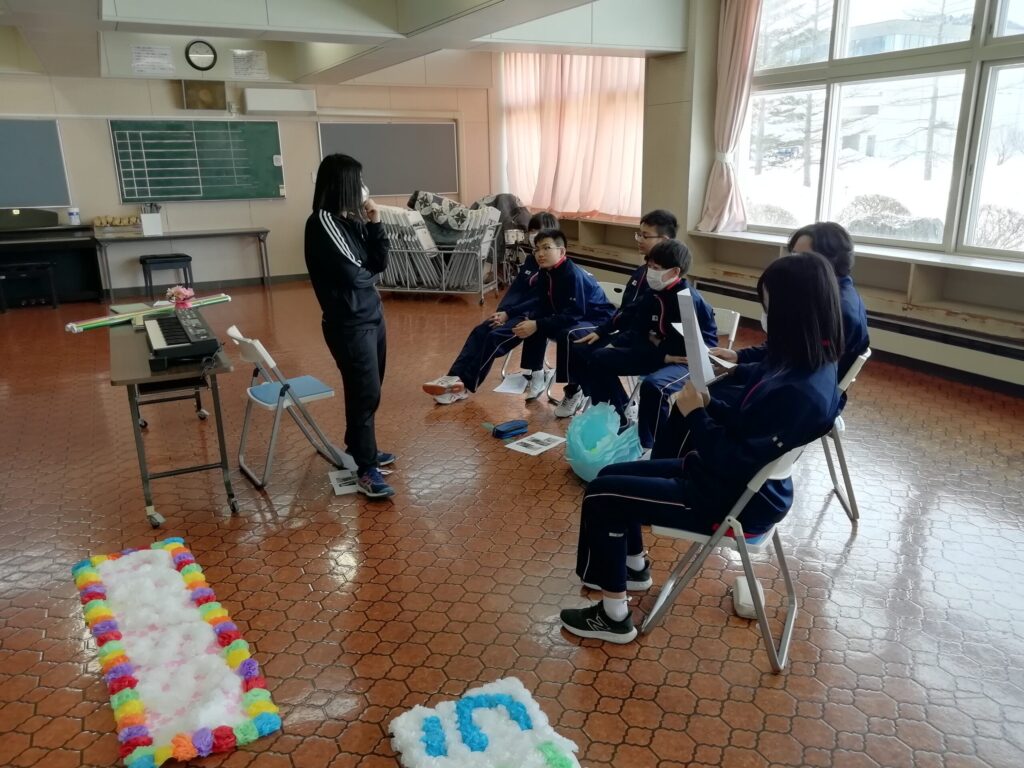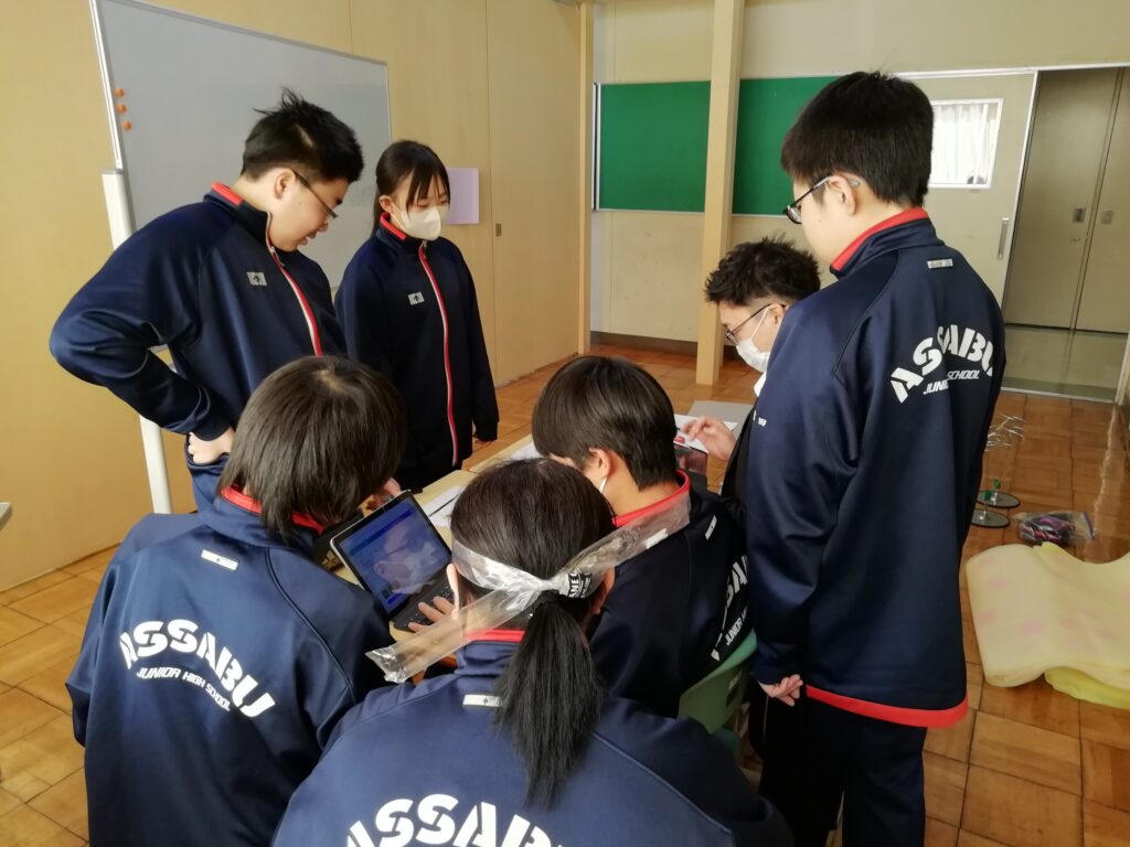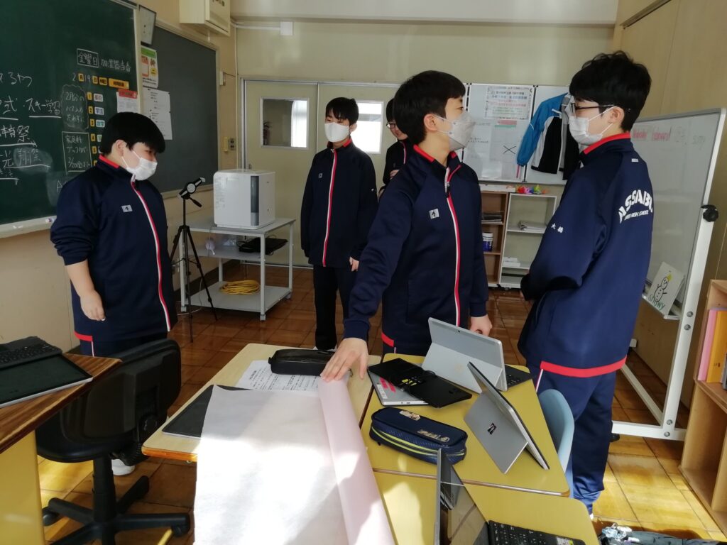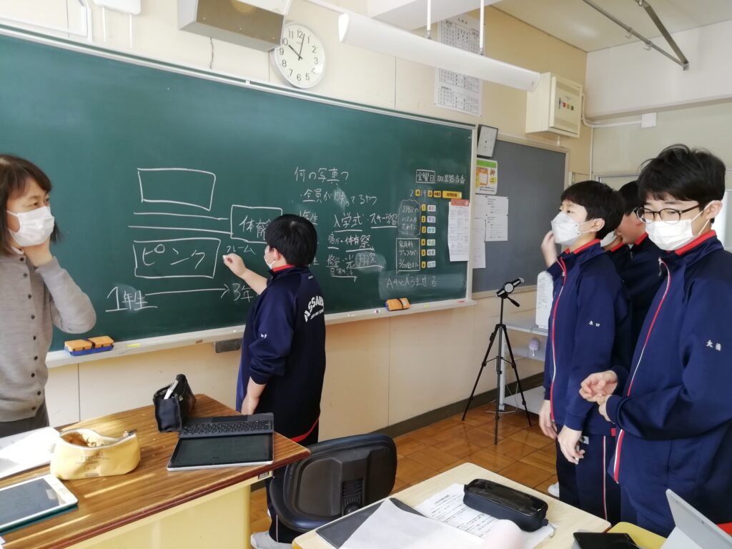 今日は1年生が卒業式に向けて、グループごとに校内装飾の計画を立てていました。