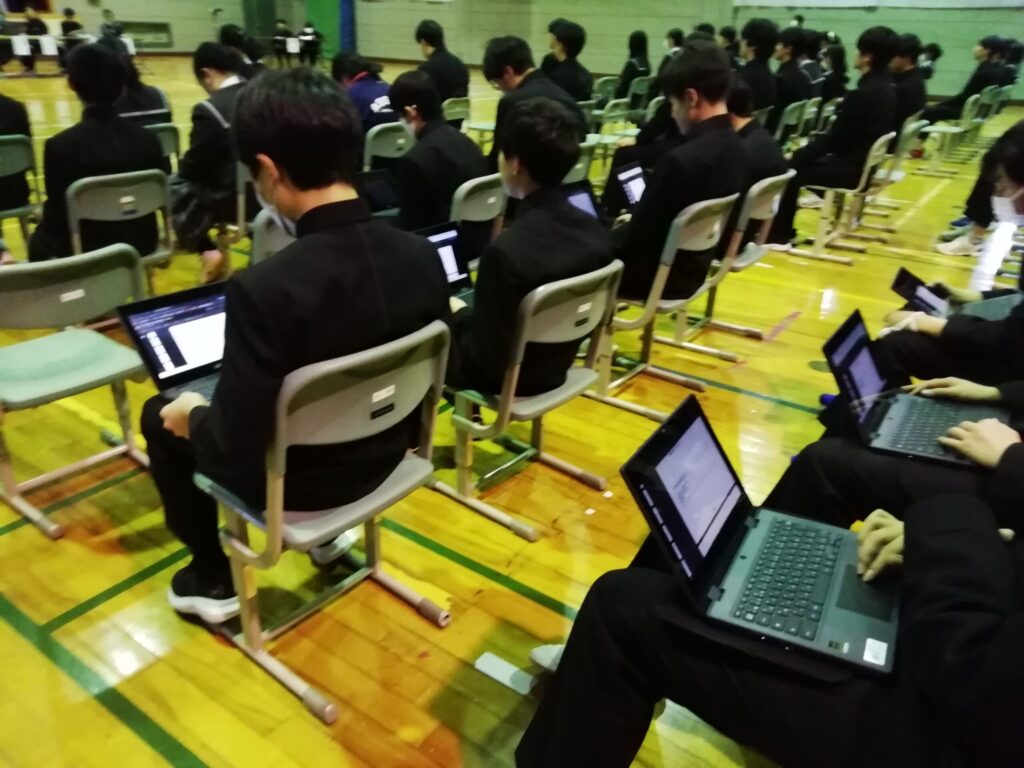 生徒総会の後は、SNS上における不適切な動画の投稿や拡散の防止について、お話があり、帰りの会で学級ごとに動画を視聴しました。