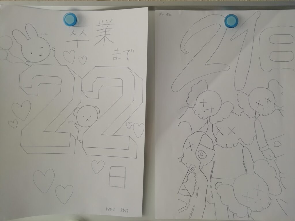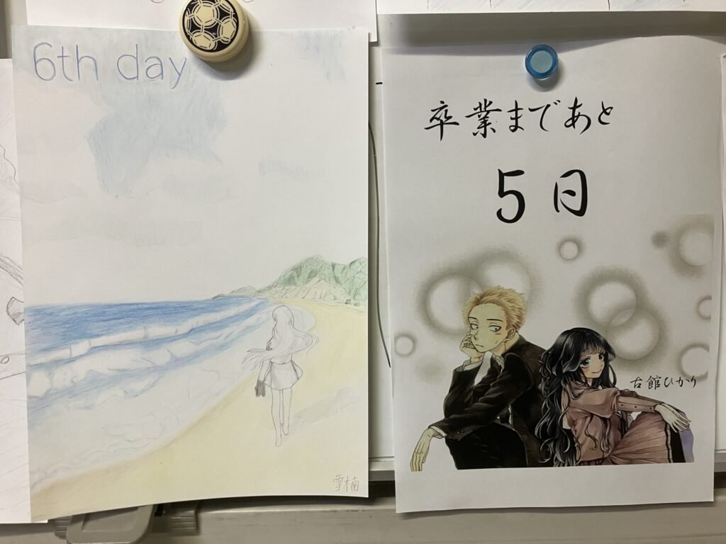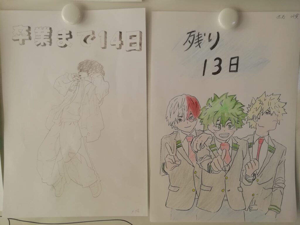 校舎を見回って3階にいくと、教室に前にはカウントダウンカレンダーがはられています。気が付くと残り数枚となっています。いよいよ卒業式が迫っていると実感します。