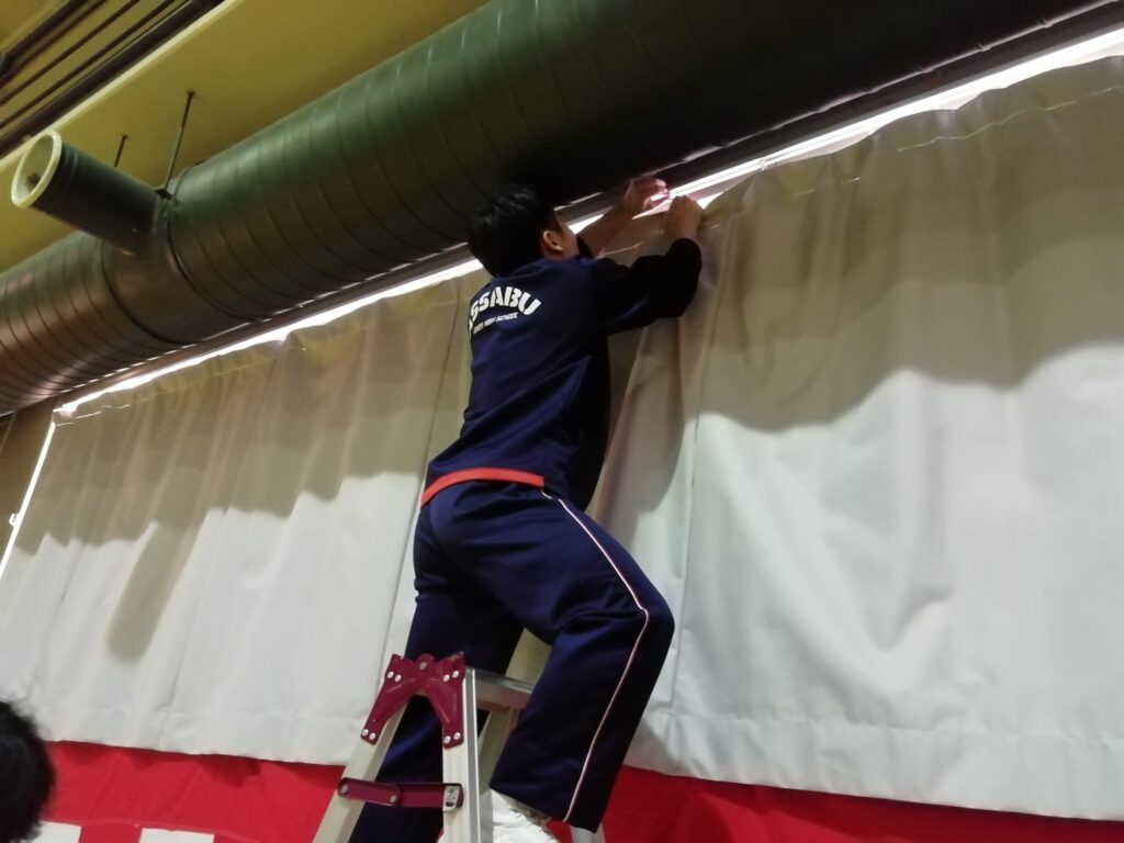 月曜日は、午後からひとしきり送る会で楽しみ、放課後には会場設営をしました。細かいところにまで気を配り、1・2年生が協力し、みるみる会場が仕上がっていきました。