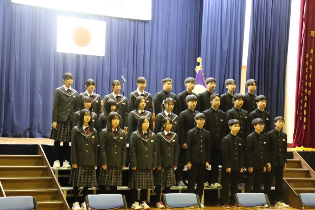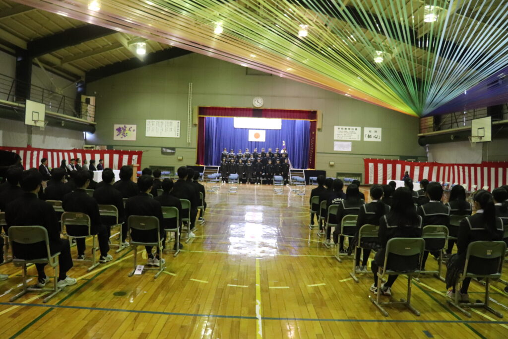今までの全体練習とは違い、3年生も1・2年生も今まで以上に心のこもった態度で臨めました。緊張感をもって卒業証書を受け取る卒業生の様子を温かく見守る在校生。式を盛り上げる歌声。